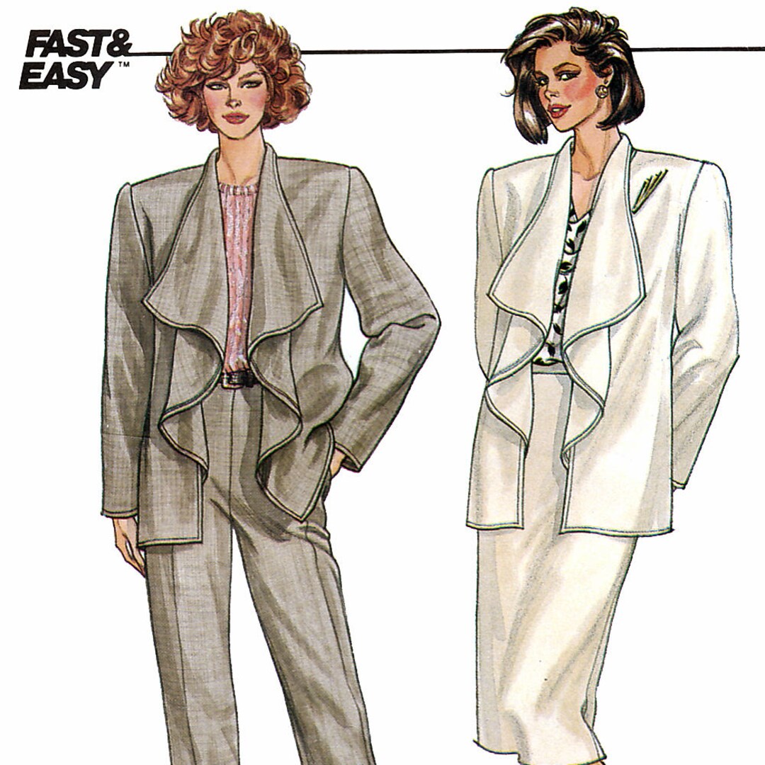 Loose-fitting lined jacket with purchased shoulder pads has front gathered into forward. This Is The New eBay. Butterick 3418 Sewing Pattern Making History Misses Skirt Size 182022.